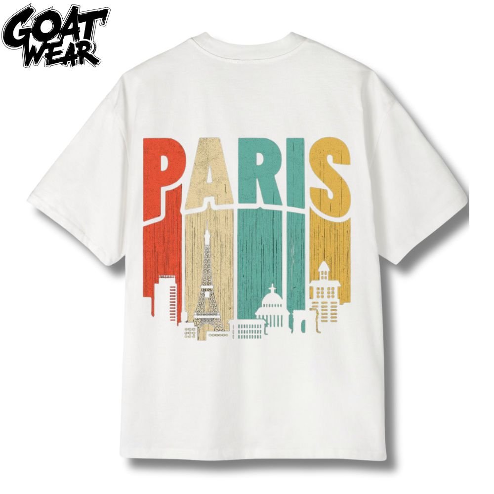 Ce T-shirt est une véritable déclaration d’amour à la Ville Lumière, avec un design rétro qui évoque le charme intemporel de Paris. Il présente une illustration stylisée des monuments emblématiques de la ville, comme la Tour Eiffel et l’Arc de Triomphe, surmontée du mot “PARIS” dans une typographie vintage colorée.